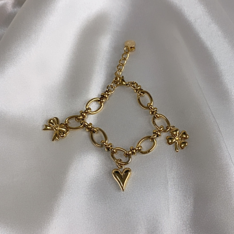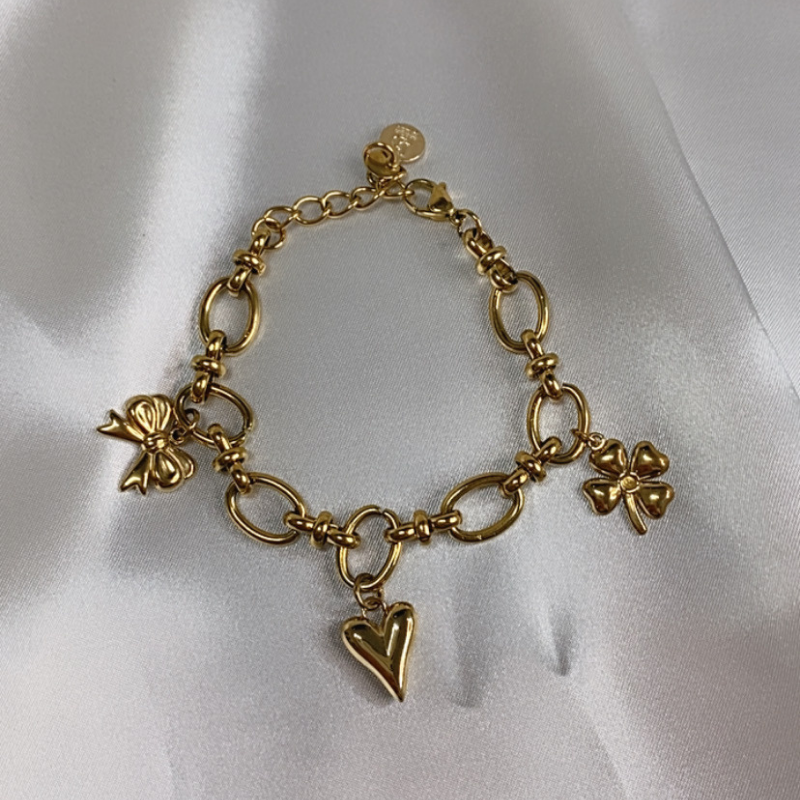 A Symbolic Treasure: Heart Bow Clover Charm Bracelet