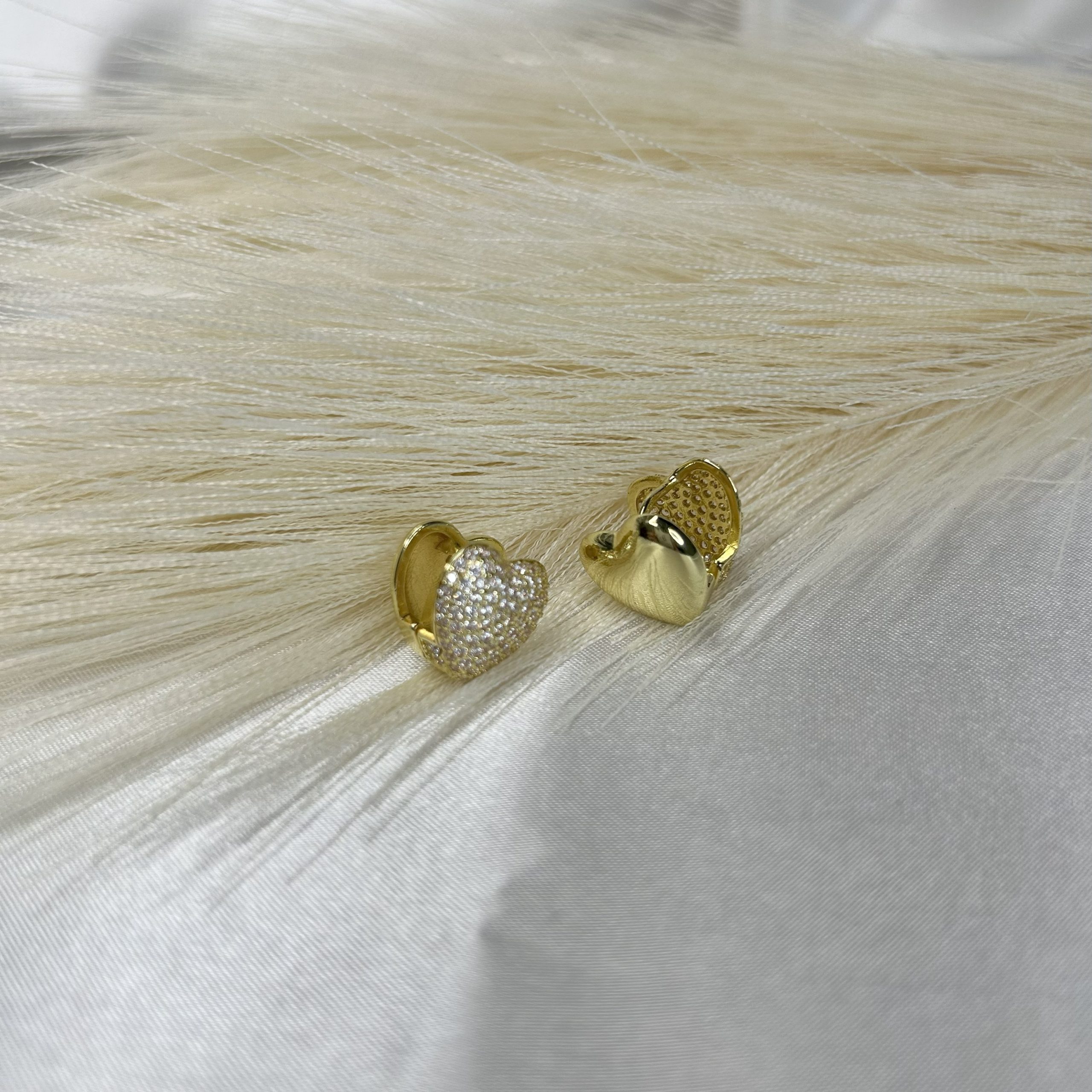 Reversible heart-shaped earrings: one sleek, polished side for a minimalist look, and the other adorned with sparkling micropavé for a sophisticated touch. Crafted in premium stainless steel, they combine durability with timeless elegance, making them the perfect accessory for any occasion.